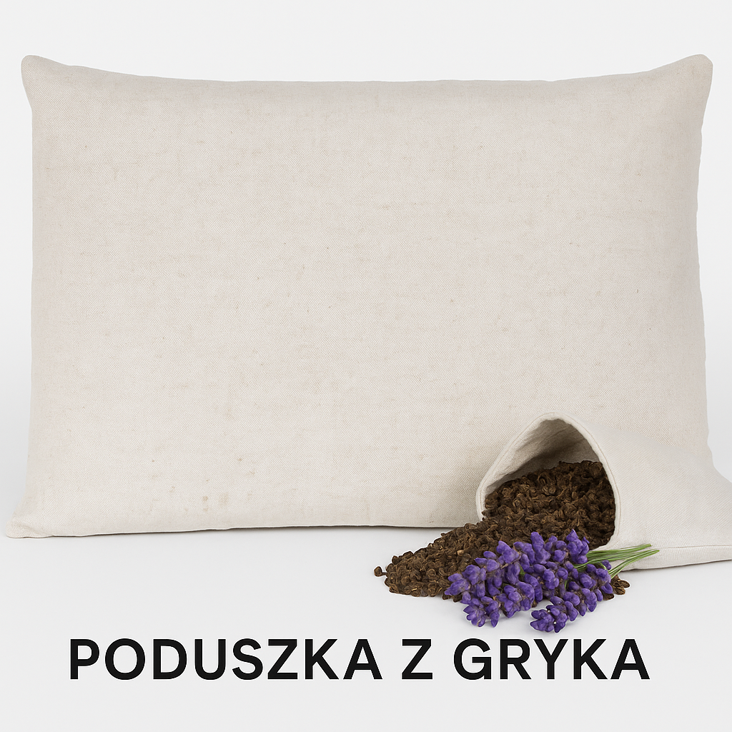 Poduszka wykonana z grubej, wytrzymałej tkaniny lniano-bawełnianej oraz wypełniona ekologiczną łuską gryki z dodatkiem lawendy. Idealne połączenie trwałości, komfortu i aromaterapeutycznego działania natury.