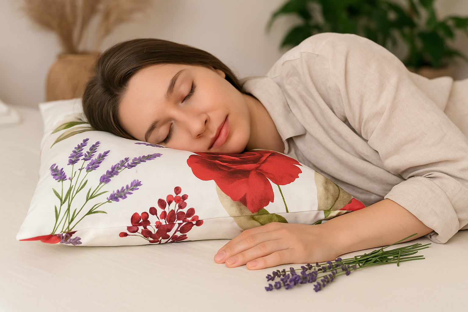 Ta poduszka to nie tylko komfort, ale i naturalna forma aromaterapii – wypełnienie tworzy przyjemny, delikatny zapach natury, który sprzyja głębokiemu, spokojnemu snu.
