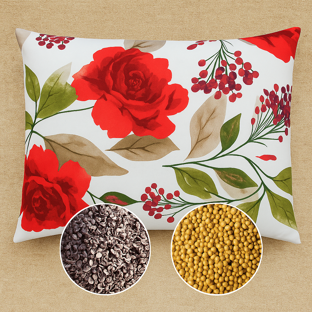 Lecznicza poduszka bawełniana z wypełnieniem z łuski gryki i dodatkiem gorczycy