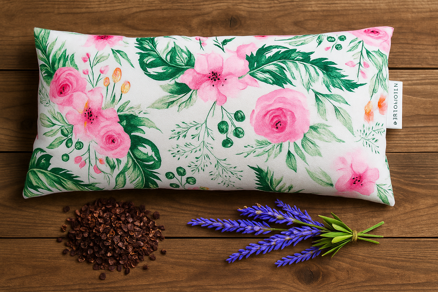Naturalny zestaw prezentowy poduszki z łuską gryki i lawendą – idealny eko prezent dla niej R1